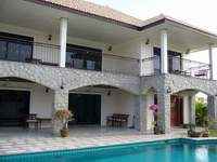Exceptional 3 bedroom, 3 1/2 bath villa for rent, minutes from beach and Hua Hin town. Spacious 2 story house with very large, very private pool and jacuzzi. The villa, which is about 3 kilometers south of the center of town, sleeps six in three bedrooms (all with en-suite full bathrooms). One bedroom has a king bed, another a queen bed and the third has twin beds.